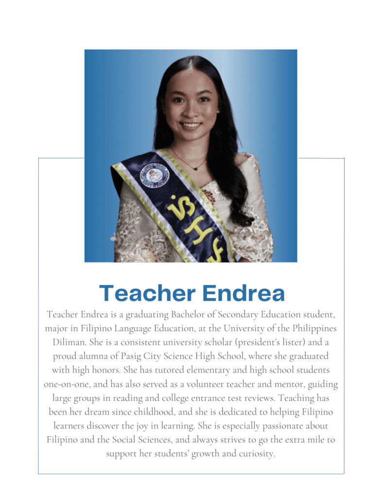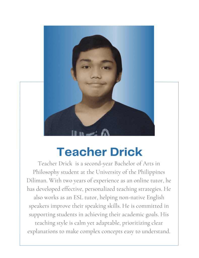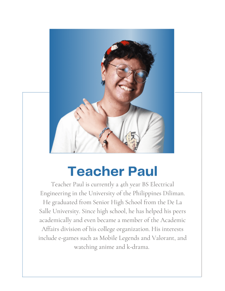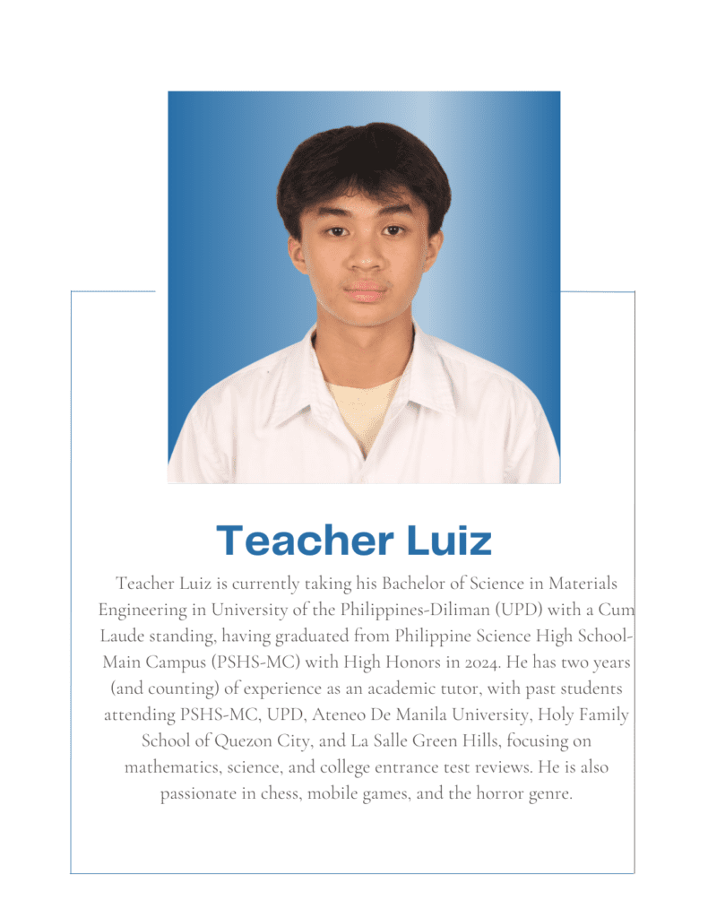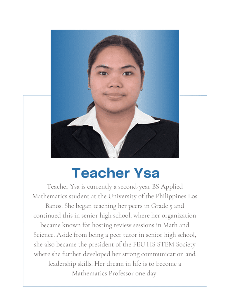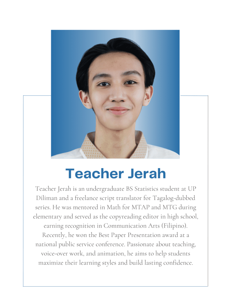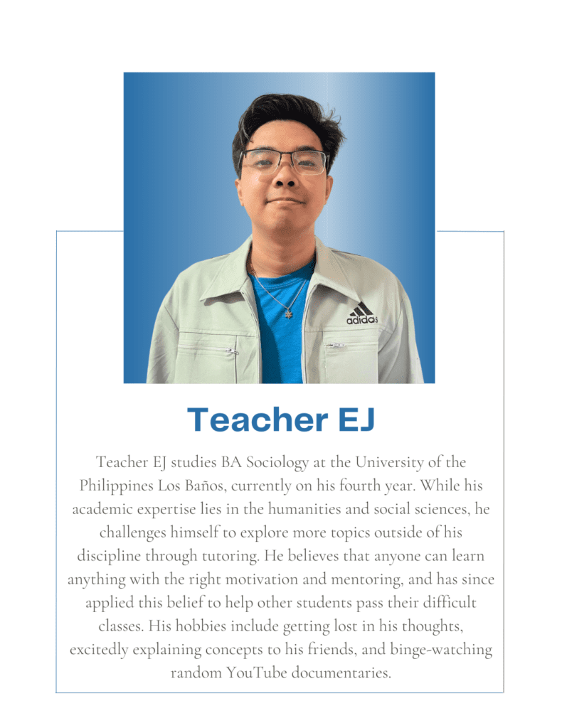 Tutorial Hub PH carefully chooses tutors with the proper educational credentials and a genuine interest in sharing their knowledge to help students build an excellent academic self-image and achieve their academic goals. All are studying or graduated from UP, with some currently taking their masters or PhD at the university.