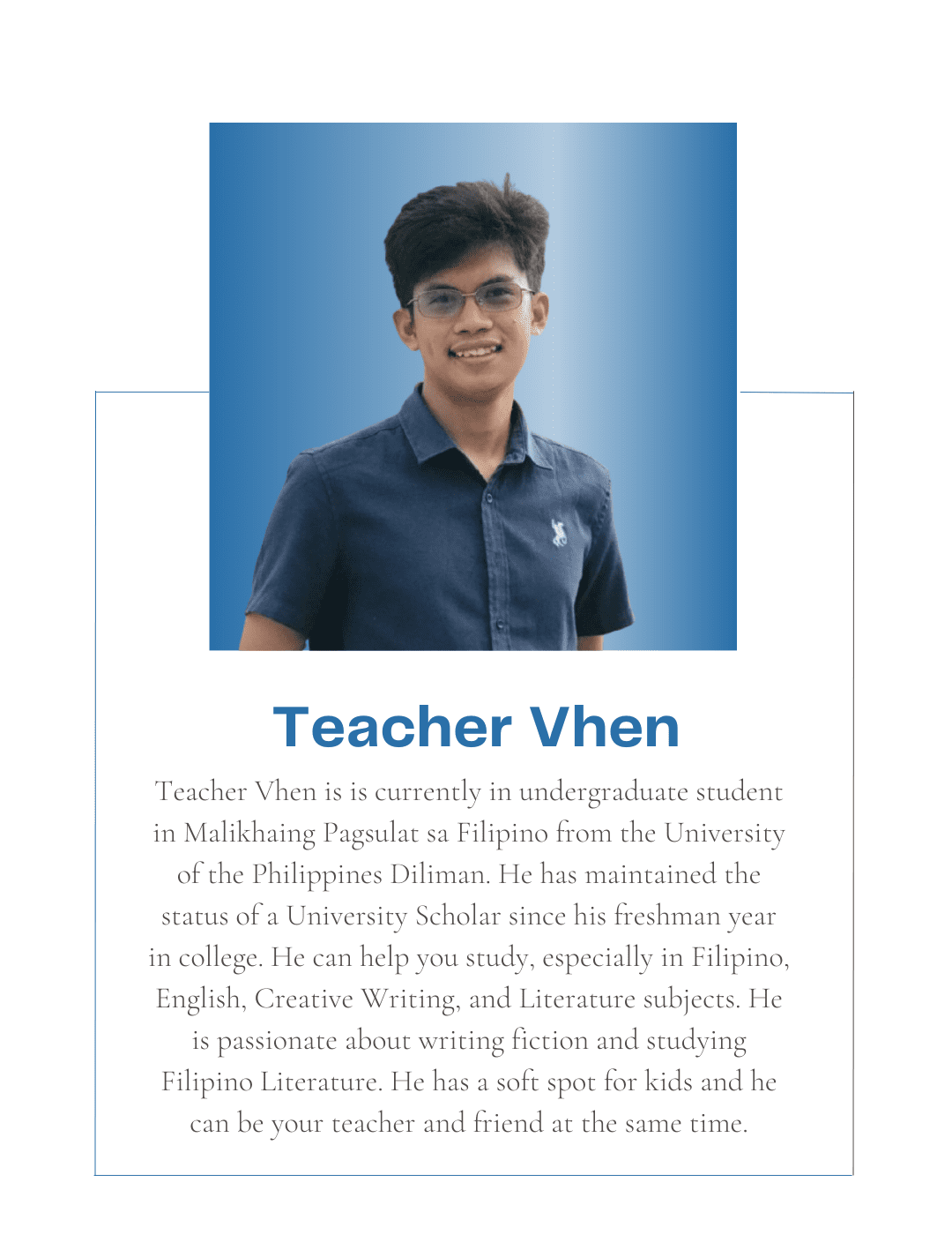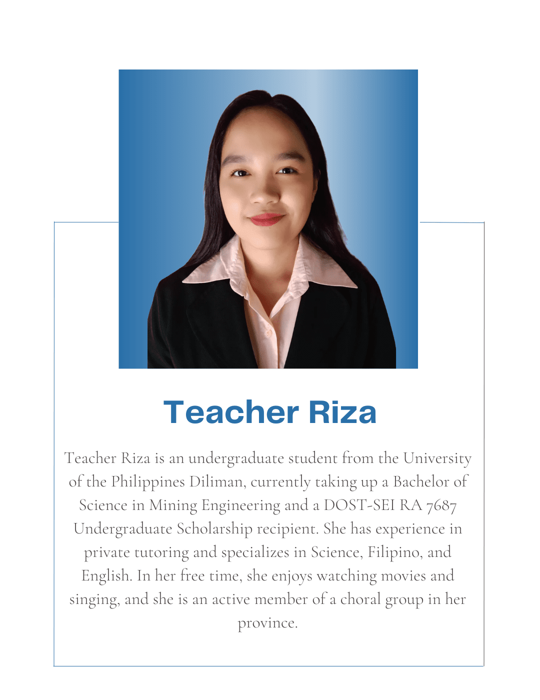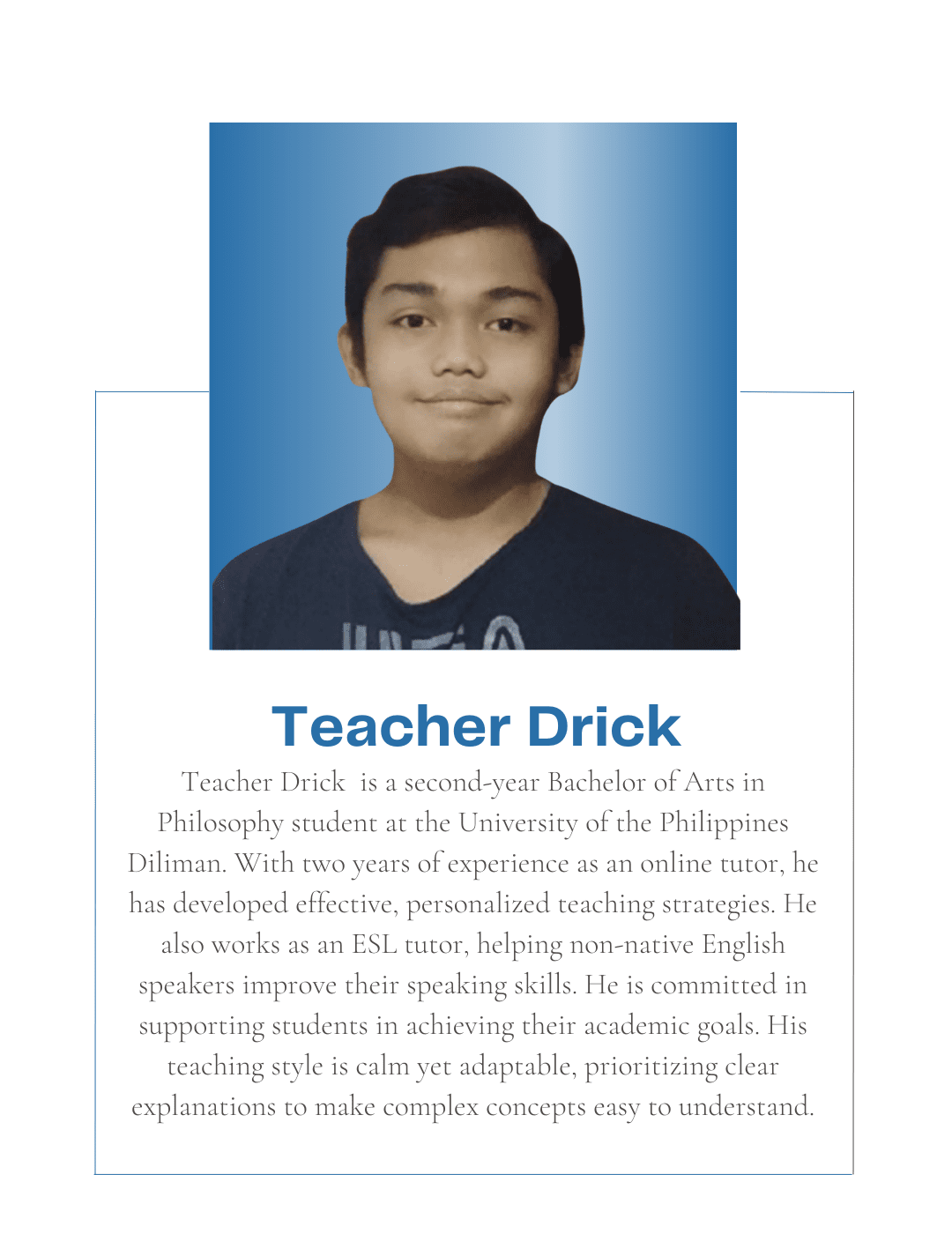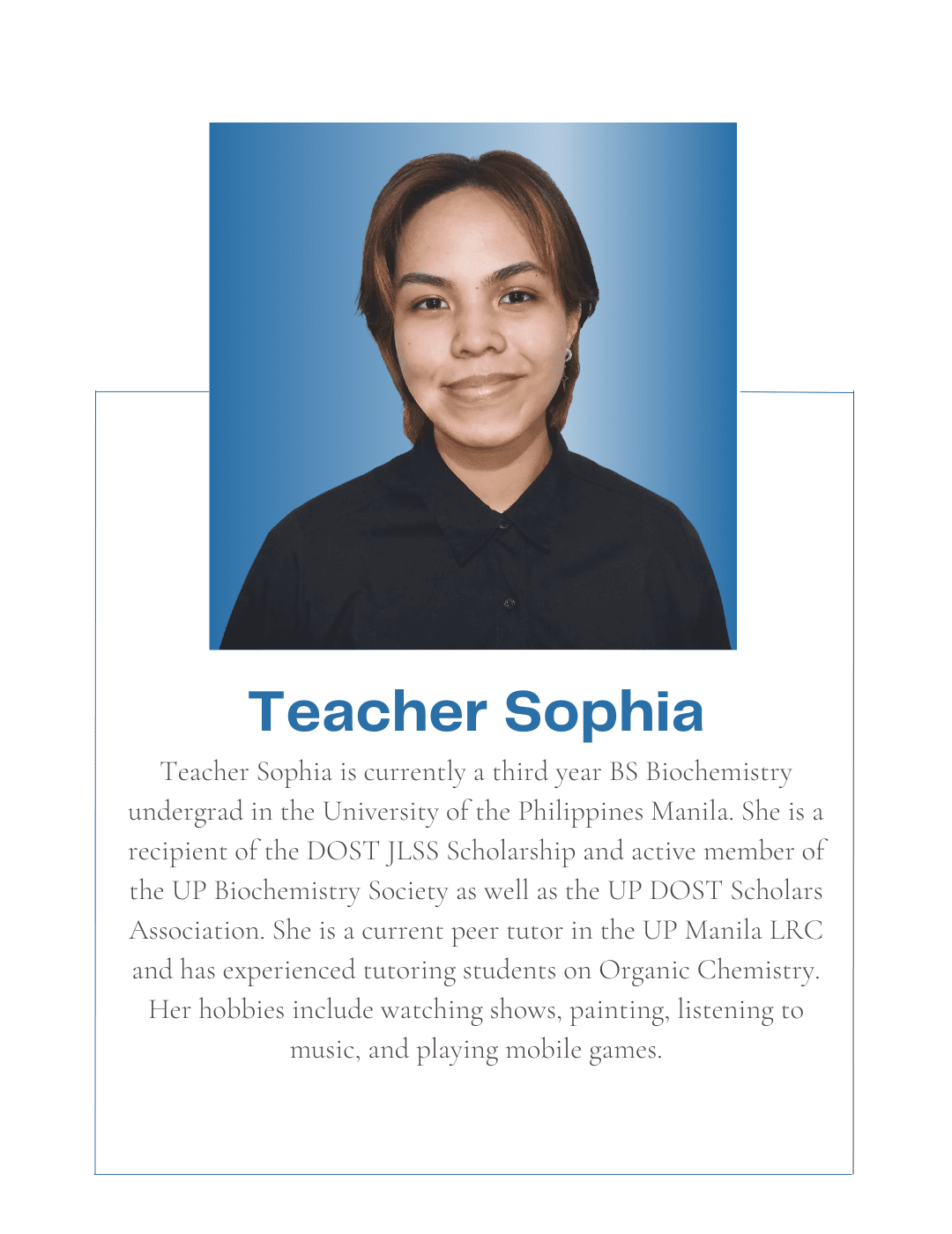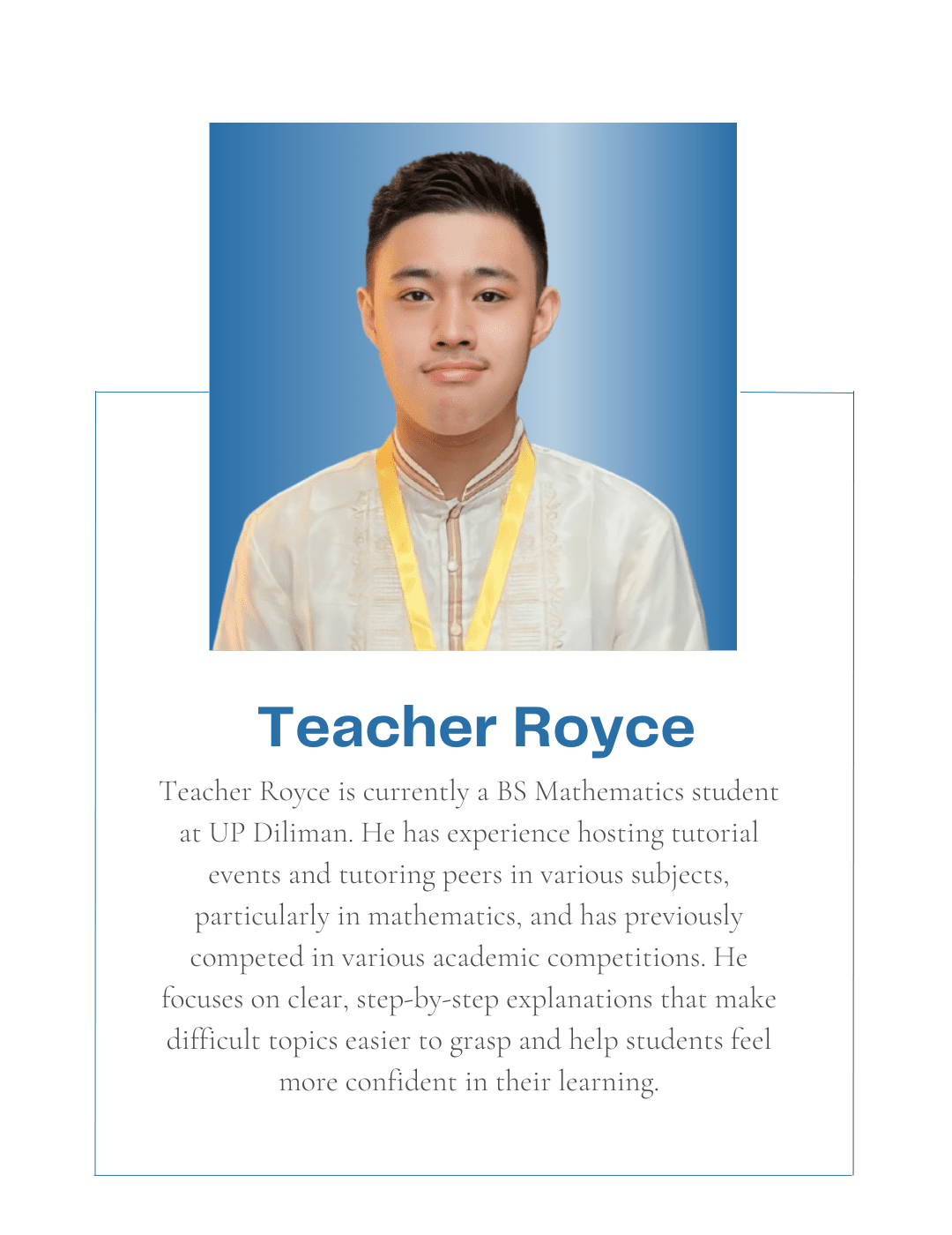 Tutorial Hub PH carefully chooses tutors with the proper educational credentials and a genuine interest in sharing their knowledge to help students build an excellent academic self-image and achieve their academic goals. All are studying or graduated from UP, with some currently taking their masters or PhD at the university.