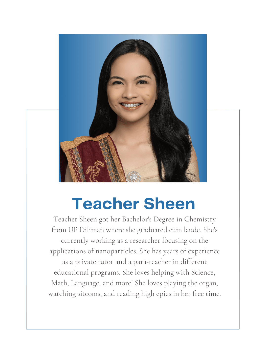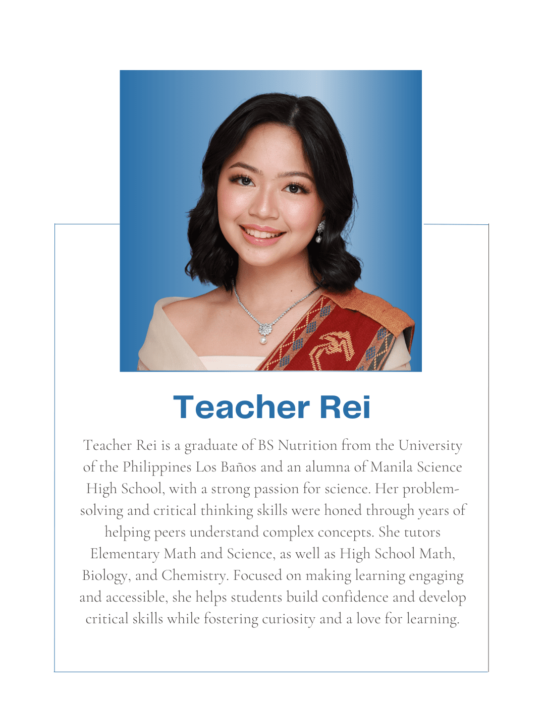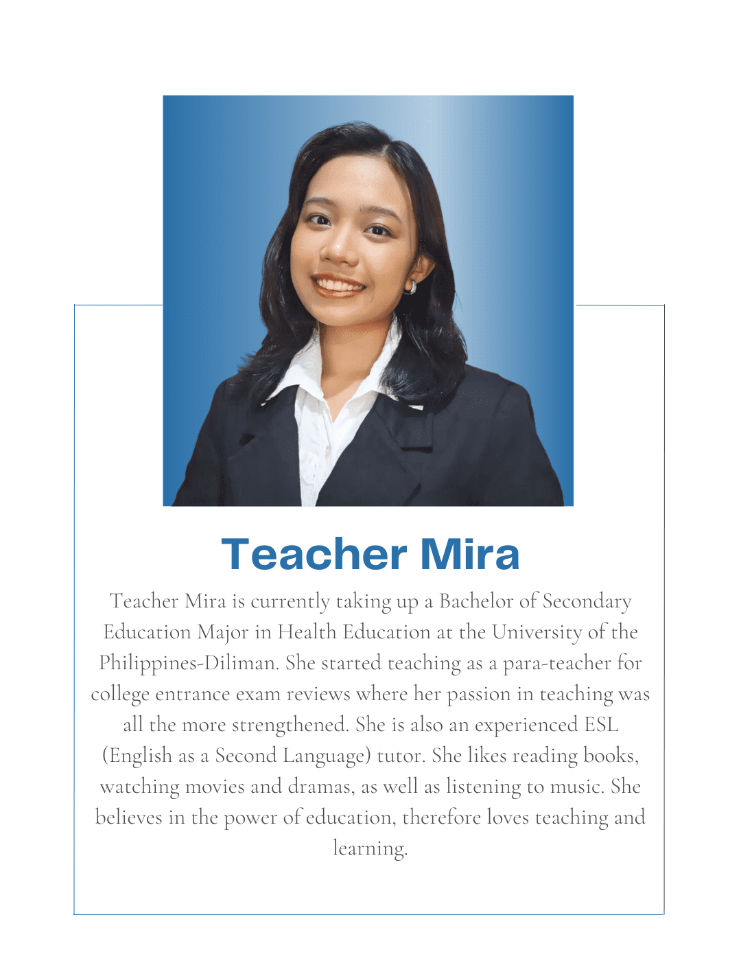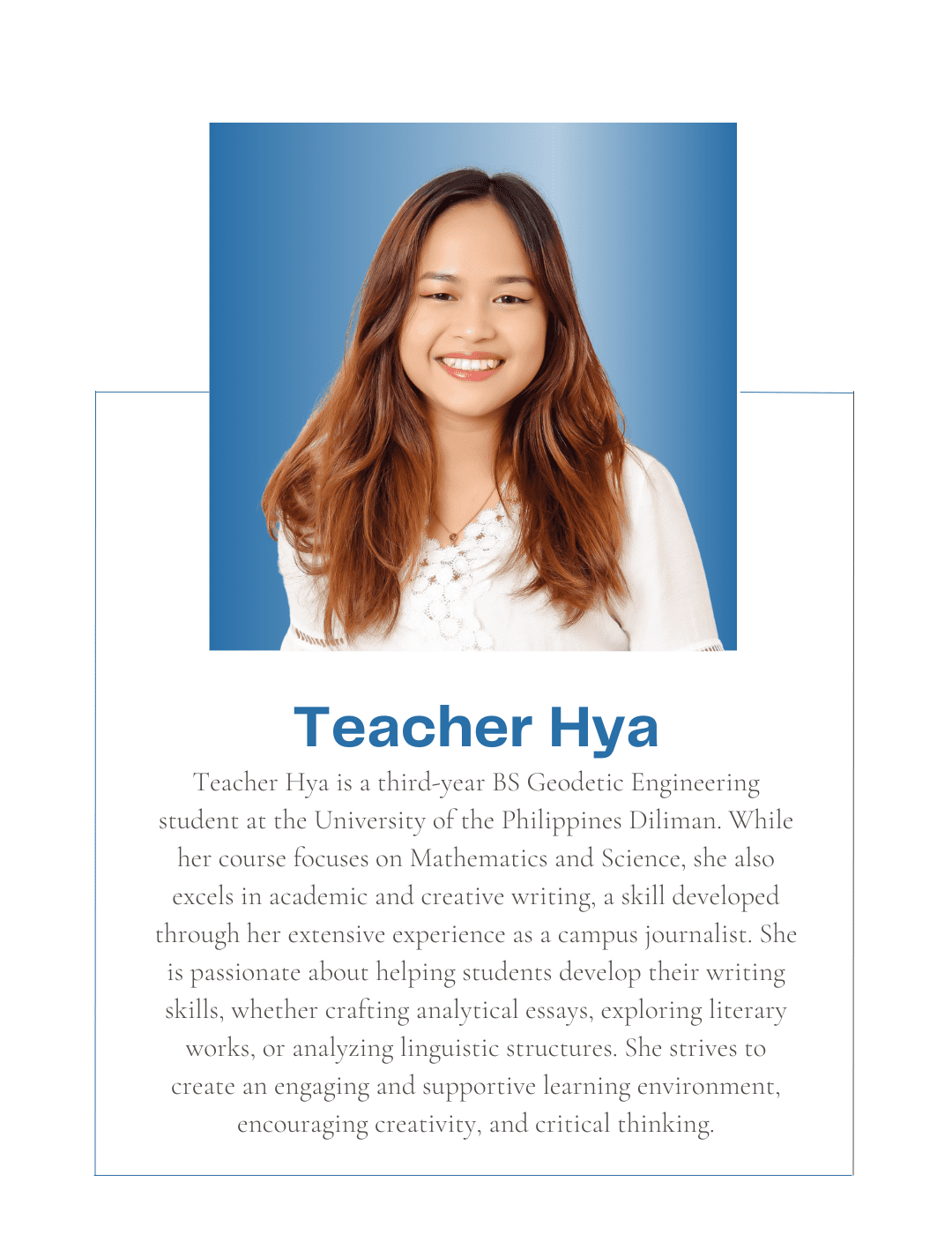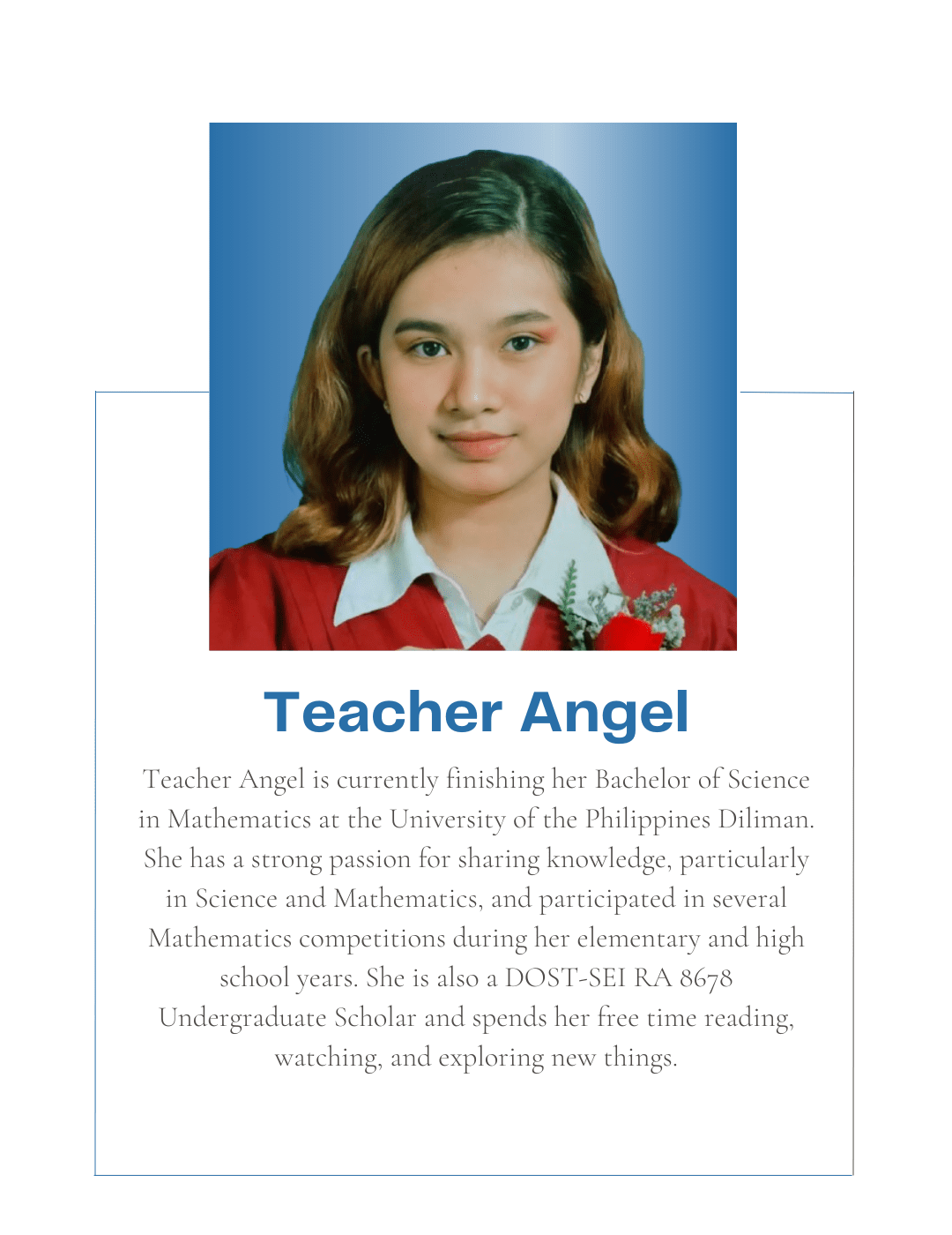 Tutorial Hub PH carefully chooses tutors with the proper educational credentials and a genuine interest in sharing their knowledge to help students build an excellent academic self-image and achieve their academic goals. All are studying or graduated from UP, with some currently taking their masters or PhD at the university.